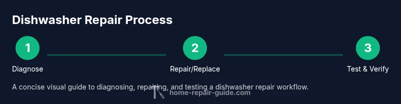A successful repair follows a repeatable workflow: diagnose, isolate, repair, reassemble, and test. Start by identifying the symptom and confirming that the problem is reproducible. Then isolate the faulty component by testing electrical connections and mechanical movement, while ensuring power and water are disconnected. Replace the failed part with a compatible unit, reseal joints, and reassemble the dishwasher. Finally, restore power, run a test cycle, and observe for leaks, proper drainage, and clean performance. This overview sets the stage for the detailed steps below, and helps you plan the session to avoid surprises.