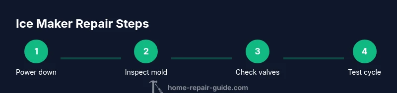 Ice makers fail for a few common reasons, and most problems are solvable with careful troubleshooting. A jammed ice mold, a frozen fill tube, a clogged water inlet filter, or a stuck ice maker arm can prevent ice production or dispensing. In many homes, inconsistent ice production traces back to the water supply line or an out-of-calibration float switch. The Home Repair Guide team has found that the majority of failures stem from simple, addressable causes rather than a full ice maker replacement. Understanding how the system works helps you target the right component without unnecessary guesswork. Throughout this guide, focus on safety, model-specific instructions, and using quality parts to ensure lasting results. The keyword to watch for is repair refrigerator ice maker—precision fixes save time and money while protecting your appliance.