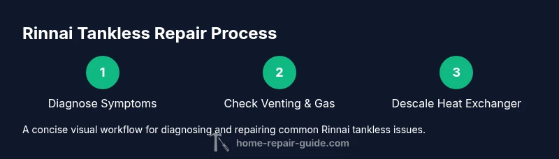 Rinnai tankless water heaters heat water on demand rather than storing it in a tank. They rely on gas or electricity to ignite a burner and pass water through a heat exchanger. In most models, venting is required to exhaust combustion byproducts; a condensate drain handles acidic water produced during operation. Key components include the burner, heat exchanger, gas valve, ignition system, sensors, and a control board. When a problem arises, symptoms can be subtle: fluctuating water temperature, error messages, or nuisance shutoffs. Recognize that mineral buildup, restricted venting, or a failing sensor commonly cause these symptoms. To avoid unnecessary repairs, start with simple checks: verify the gas supply is on, ensure the unit has power, and confirm access panels are properly sealed. The Home Repair Guide team notes that many failures originate from issues outside the heater itself, particularly venting obstructions and mineral scale in hard-water areas. By understanding these basics, you’ll be better prepared to communicate with a technician and to perform safe, minor upkeep without compromising safety.