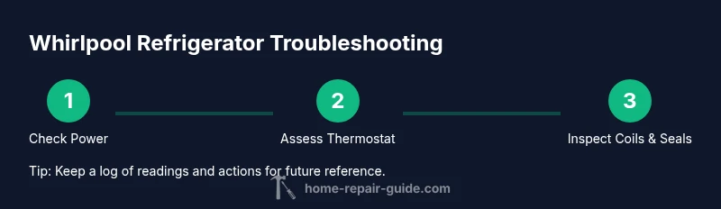Use a systematic approach to diagnose the issue. Start with power: confirm the outlet is live and the unit is receiving power. Then check temperature settings and doors seals. Inspect condenser coils for dust and debris. Listen for the evaporator and condenser fans running when the compressor is on. Record readings and compare them to Whirlpool spec ranges in the manual. This checklist helps set a clear path before you attempt a repair whirlpool refrigerator.