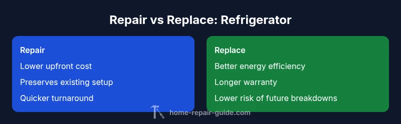Age is a central driver in the decision to repair or replace a refrigerator. Modern models typically deliver better energy efficiency, longer warranties, and improved reliability compared to older units. If your fridge is approaching or past its tenth year, even a small fault can foreshadow more serious failures. This is where you weigh the cost of future repairs against the price of a newer, more efficient model. The Home Repair Guide team emphasizes that the cumulative risk of multiple failures grows with age, and energy costs tend to rise as components wear. If you notice persistent noises, cooling inconsistencies, or rising electricity bills, it is prudent to evaluate replacement alongside repair quotes. For households with tight budgets, a well-timed repair can extend life by several years and buy time for a planned replacement.