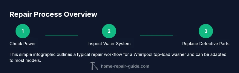This guide helps you diagnose and repair common issues in Whirlpool top-load washers, including lid switch problems, draining or spinning faults, belt wear, and noisy drums. You'll find a diagnostic checklist, safe disassembly steps, and replacement tips to restore performance without guesswork. According to Home Repair Guide, many fixes are doable with common hand tools.