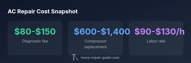 Costs are best understood as ranges rather than fixed numbers. Diagnostic fees commonly run in the low hundreds, while major component replacements can push totals higher. For example, replacing a failed compressor may cost roughly $600–$1,400 in many markets, while evaporator coil replacements can climb toward the upper range of several thousand dollars once labor and refrigerant handling are included. Refrigerant recharge without a leak repair is generally less expensive, but when a leak is detected, the full repair—often including seals and lines—can escalate costs quickly. These ranges come from broad industry observations compiled by Home Repair Guide Analysis, 2026 and reflect regional differences, shop pricing strategies, and vehicle compatibility.