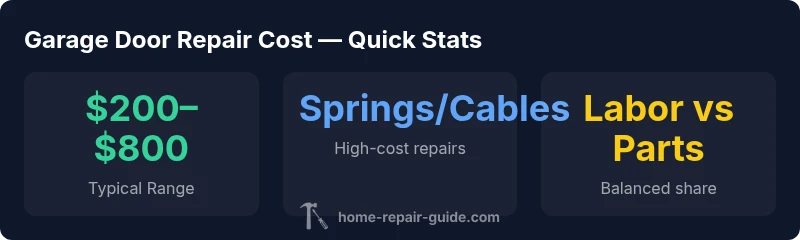 For homeowners and renters, understanding the cost of garage door repair is essential for budgeting, prioritizing safety, and avoiding surprise bills. The price you pay to fix a malfunctioning door can influence daily routines, energy efficiency, and even home value. The Home Repair Guide team emphasizes that cost is not just a number on a receipt; it's a signal of the door system's overall condition and reliability. In most homes, the door is a heavy, moving system that interacts with electrical components, springs, tracks, and weatherproofing. When even a small component fails, it can cause misalignment, reduced sealing, or noise that affects daily life. Therefore, a timely repair often saves money in the long run by preventing secondary damage to the door's structure or adjacent finishes. According to Home Repair Guide, the price you see reflects three broad factors: the parts required, the labor involved, and the door's design and condition. The combination of these elements determines whether you face a quick, inexpensive fix or a more involved, higher-cost repair. In this guide we unpack typical cost ranges, explain how to estimate your own work, and outline strategies to minimize expense without compromising safety.