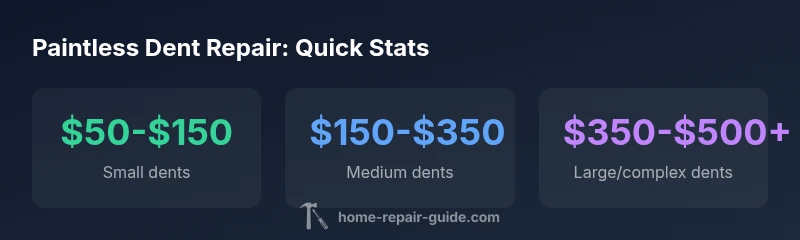 Paintless dent repair (PDR) costs vary by dent size, access, and location. In general, small dings cost about $50-$150 per dent, medium dents $150-$350, and larger or hard-to-reach dents can exceed $500. Prices differ by shop and region, and discounts may apply if multiple dents are addressed in one visit. According to Home Repair Guide analysis, accessibility is the biggest price driver.
