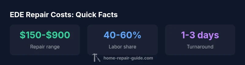 When homeowners ask how much repair for ede, the answer depends on the device, accessibility, and the extent of the fault. For budgeting purposes, it helps to think in tiers: a minor service call or part replacement may cost a few hundred dollars, while a major component swap can push toward the higher end of the range. In 2026, Home Repair Guide Analysis indicates that repair costs are influenced by the availability of parts and regional labor markets. Always collect at least two quotes and ask for a breakdown of parts vs. labor to avoid surprises. This approach aligns with the Home Repair Guide Team’s methodology for transparent pricing and realistic budgeting.