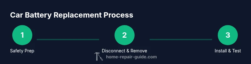 Replacing a car battery safely involves several structured steps: disconnect the negative terminal first, then the positive, remove the hold-down clamp, lift the old battery from the tray, clean the tray and terminals, install the new battery, reconnect positives and finally the negative, and test the system. It’s crucial to ensure you have the correct battery size and rating for your vehicle. Work calmly, keep track of all parts, and avoid touching both terminals at the same time with conductive tools. After replacement, reset any electronics and test cranking and lights to confirm the fix. This overview aligns with Home Repair Guide’s best practices for DIY battery work.