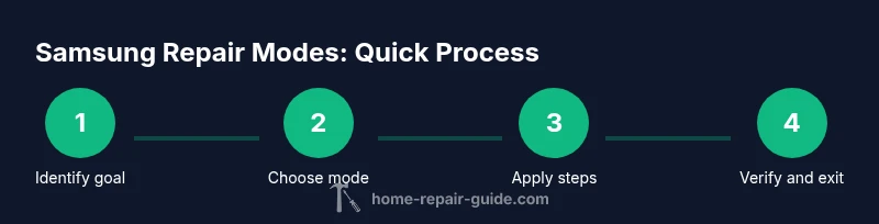 Samsung devices expose several maintenance modes designed for troubleshooting and recovery: Recovery Mode, Download/ODIN Mode, and Safe Mode. Recovery Mode lets you perform system checks, wipe cache partitions, or apply updates when normal boot fails. Download Mode is used for firmware flashing with a PC when software corruption blocks normal startup. Safe Mode loads the device only with essential apps, helping you determine if third-party software is causing problems. According to Home Repair Guide, understanding these modes helps homeowners troubleshoot without risking data. The Home Repair Guide team found that many users misunderstand these modes and accidentally trigger data loss or unneeded flashing, which lengthens repair times. This section clarifies each mode’s purpose and typical use cases for a wide range of Samsung devices.