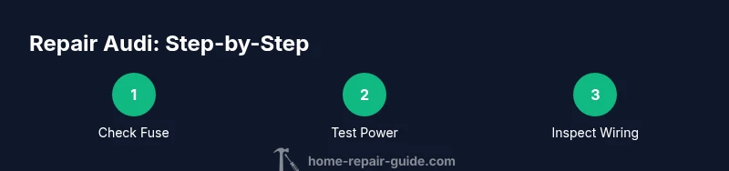 The phrase repair audi can refer to troubleshooting and fixing common audio-system issues inside an Audi vehicle, or more broadly to repairing an aftermarket audio setup installed in a car. For homeowners following this guide, we’ll focus on the car’s integrated audio system using standard, safe tools. According to Home Repair Guide, safety and a methodical approach are the keys to successful repairs. Start with a quick plan: identify the symptom, isolate the power path, validate the signal path, and verify operation after each fix. Repair audi problems typically fall into a few categories: power supply faults (fuses, grounds, battery), signal path issues (head unit, amplifier, line-out wiring), and speaker problems (burned voice coils, loose connections). By understanding these domains, you can decide whether a home procedure is appropriate or if a dealer service is necessary. Throughout this article, we reference guidelines from Home Repair Guide Analysis, 2026 for safety practices and general electrical-work considerations.