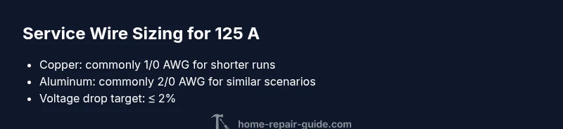 Determining what size service wire for a 125 amp panel requires evaluating several variables: the conductor material, the insulation temperature rating, the length of the run, and the intended load. In most residential installations, the service drop or feeder is sized according to NEC ampacity tables, which relate the allowable current to the conductor cross-section. The 125 amp panel is a common service size for homes with moderate loads, but the exact wire size cannot be guessed from the panel rating alone. According to Home Repair Guide, you should start with the NEC mixed table references and then confirm with actual field measurements, including voltage drop calculations if the run is long. This ensures safety, code compliance, and adequate voltage at the panel. Always consult a licensed electrician for final sizing; local amendments can change required conductors. We will walk through copper vs aluminum choices, typical sizes, and practical checks to help you decide what size service wire for 125 amp panel is appropriate for your setup.
