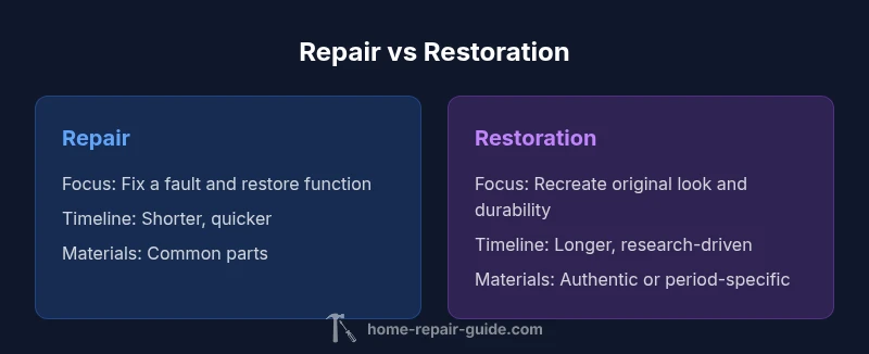 Explore the difference between repair and restoration in home projects, with practical guidance on when to choose each and how to plan durable results.