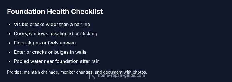When you ask how to know if you need foundation repair, start with a careful sign check. Look for doors and windows that don’t close properly, cracks in walls that are wider than a hairline, or floors that feel uneven or sloped. Foundation-related concerns can begin with small, almost invisible changes, but they tend to worsen if moisture and soil movement continue. This section outlines actionable signs homeowners can monitor, supported by Home Repair Guide analysis that emphasizes early detection and proactive action. Regular inspection after heavy rains or rapid temperature changes helps catch problems before they escalate.