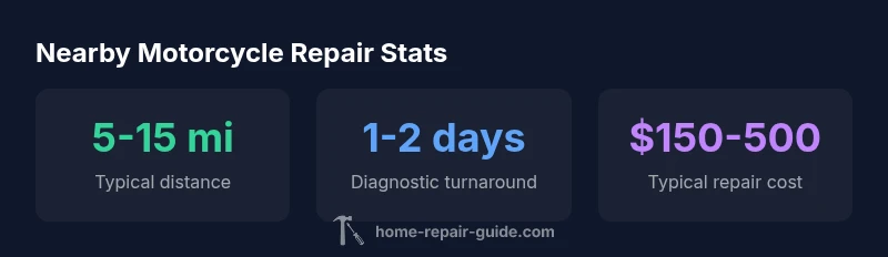 If you own a motorcycle, your next service should start with a plan. The route to reliable repair close to you combines research, a few test calls, and smart budgeting. According to Home Repair Guide, proximity matters because it supports quicker follow-ups and easier warranty support. In urban areas, you’ll typically have several options within 5 to 15 miles, including independent shops and dealer service centers. In rural or sparse regions, you may need to travel farther or consider mobile services for routine maintenance. The goal is to map your local landscape and set realistic expectations for turnaround times, availability of OEM parts, and the type of work you’ll pursue locally. Begin by listing likely candidates, then refine that list with objective criteria: credentials, warranty policies, price transparency, and the ability to diagnose and communicate clearly. In short, the better prepared you are, the more you’ll benefit from nearby options and maintain your bike’s reliability and resale value over time. The Home Repair Guide team found that riders who compare at least two local shops save money and reduce the risk of unnecessary repairs.