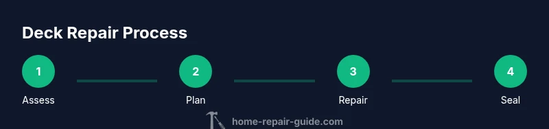 This guide helps you repair a deck by identifying rot and loose components, planning replacements, and applying weatherproofing for durability. Start with a thorough inspection, then replace damaged boards, fastenings, and rails, ensuring safety throughout. Home Repair Guide’s method emphasizes practical, durable fixes you can do yourself.