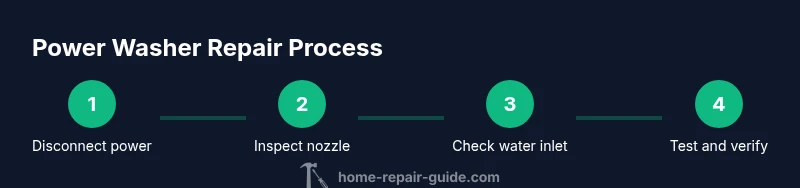 This section provides a high-level roadmap of the repair sequence. Begin with safety and power isolation, then perform a visual inspection of all external components. Test each subsystem in isolation: nozzle and spray wand, water inlet, hoses, and pump seals. For gas-powered models, check fuel, oil, and carburetor condition. If you identify worn seals or damaged O rings, replace them with compatible parts. Reassemble carefully, then perform a controlled test with low pressure to confirm proper operation. Depending on model and symptoms, some repairs may require professional servicing. Following a systematic approach helps ensure safety and reduces the risk of reintroducing faults. The Home Repair Guide team emphasizes documenting every step to support future maintenance and quick troubleshooting.