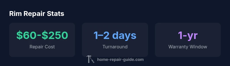 Costs for rim repair vary by material, damage severity, and location, with cosmetic work generally cheaper than structural repairs. On average, you can expect to pay a modest amount for minor cosmetic fixes and a broader range for more involved repairs like welding or resurfacing. Turnaround times depend on shop availability and whether parts must be ordered. Mobile services may offer same‑day fixes for cosmetic issues, while more complex repairs could take 1–2 days. When evaluating quotes, ask for a breakdown: labor, materials, any welding or heat treatment, and the warranty terms. Keep in mind that a high price does not always guarantee better results; equally important are technician qualifications and post‑repair support. The Home Repair Guide guidance emphasizes transparent pricing and written warranties to protect you from unexpected costs.