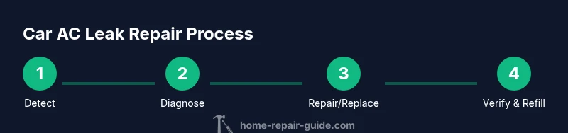According to Home Repair Guide, a car ac refrigerant leak repair is the process of locating, diagnosing, and addressing leaks in the air conditioning system of a vehicle. Refrigerant leaks reduce cooling efficiency, increase energy consumption, and can lead to compressor damage if left unattended. A leak also poses environmental harm because many refrigerants contribute to global warming and ozone depletion if released. This guide explains how to identify a leak, the safety steps to take, and the options for repair or professional service. By understanding the fundamentals, homeowners and DIY enthusiasts can make informed decisions and avoid costly missteps.