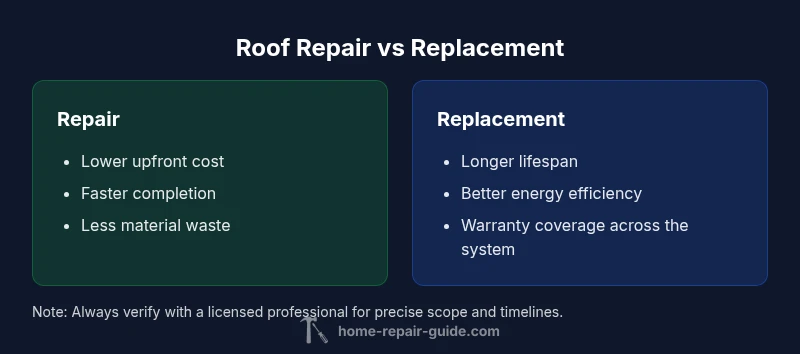 Roof repair vs replacement is a common homeowner decision. In most cases, repairs are best for minor leaks or damaged shingles, while replacement makes sense for widespread wear, structural issues, or when energy efficiency is a goal. The Home Repair Guide team recommends weighing current condition, budget, and long-term goals to choose the right path.
