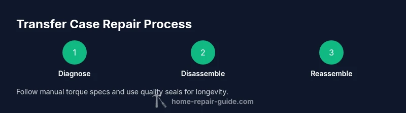 The transfer case is a critical component that directs torque between the transmission and the front and rear axles in four-wheel drive systems. When it fails, you may notice grinding, whining, or leaks. According to Home Repair Guide, most problems originate from worn seals, lubrication gaps, or damaged chain components. Different models use various chain and gear configurations, but the basic failure modes are similar: seal leaks, gear wear, and improper lubrication. By learning how the transfer case functions, you can better diagnose issues and decide whether resealing, gear replacement, or a full case rebuild is needed. This section lays the groundwork for safe, effective repair and helps you decide whether a DIY fix is realistic given your skill level and tools.